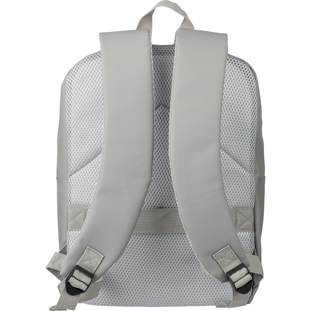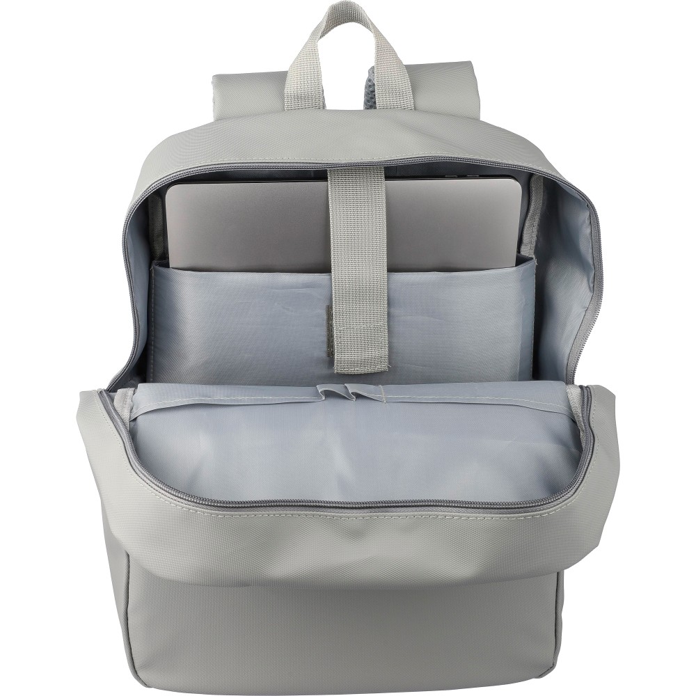 Laptop hátizsák 15 -es készülékhez. Két cipzáras elülső zsebbel, egy nagy cipzáras rekesszel és tépőzáras laptoprésszel, valamint több belső zsebbel. Szellőző, párnázott hátoldallal, trolifogantyúval és állítható vállpántokkal. Vízlepergető. Anyaga: PU.