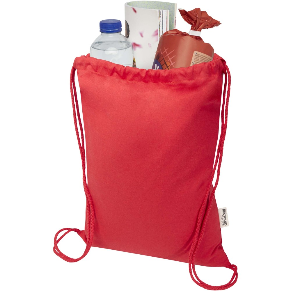 60% újrahasznosított pamutból és 40% RPET-ből készült, GRS tanúsítvánnyal rendelkező tornazsák. Egyszerre erős és könnyű megoldást kínál a mindennapi használatra. Kényelmesen hordható háton vagy vállon, nagyméretű főrekesze pedig a pamut összehúzó zsinórral gyorsan nyitható és zárható. A 180 g/m2 súlyú anyag tartós, és bőséges felületet biztosít logók vagy üzenetek megjelenítésére, így ideális promóciós ajándék márkaépítéshez vagy kampányokhoz. A hátizsák teherbírása max. 5 kg.