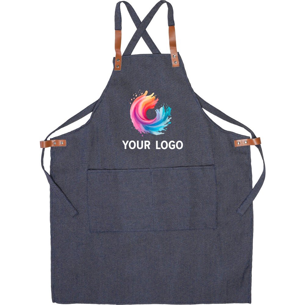 Farmerkötény vállpántokkal és két elülső zsebbel. A farmer 65% poliészterből és 35% pamutból készült. Ez a kötény nem rendelkezik nyakpánttal, csak vállpántokkal. A farmer színtartóssága 2-3 szint. Egyenként barna karton ajándékdobozba csomagolva. Anyaga: 280 g/m2.