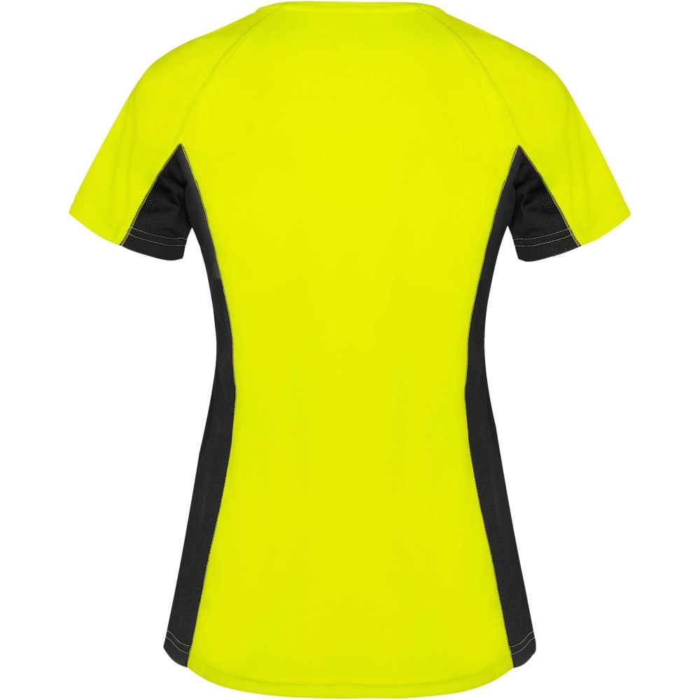 Roly Shanghai rövid ujjú női sportpóló, fluor yellow, solid black